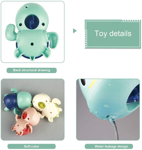 - 💦【Let Kids Like bathing】~ Let the crying baby stop crying!The tortoise team may be a great way to divert your baby's attention and make them enjoy bathing. Whether bathing or swimming, let your child splash with the tortoise team.Help kids understand knowledge of physical buoyancy and develop their hand-eye coordination.