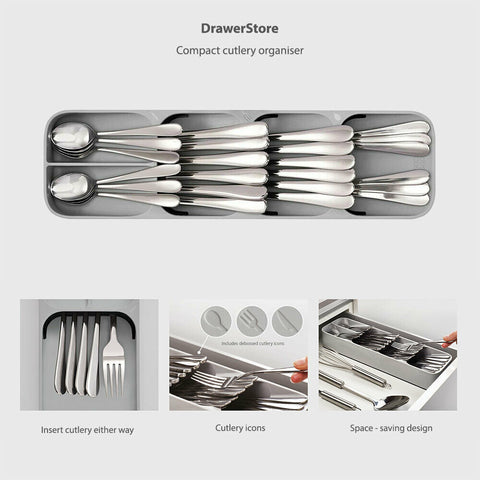 • A new and space-saving way of storing your cutlery and creates more space in your drawer.