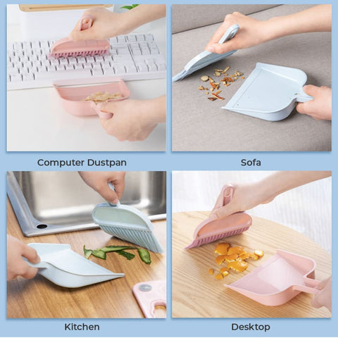 [Creative Mini Cleaning Set]: Broom-shaped brush makes desktop cleaning easy. Easy to clean the surface and every corner. The non-slip handle is easy to grasp, and the dustpan can directly collect garbage.