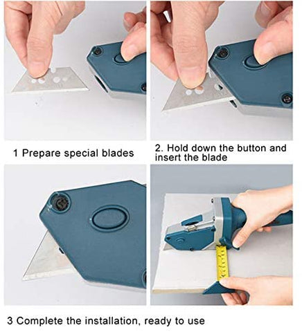 A hand-tool for the do-it-yourselfer - Measure, mark and cut drywall with one easy to use tool; also ideal for floor tile, carpet, linoleum, wood flooring, insulation, wood paneling, hanging pictures and blinds, cutting fabric, foam board, vinyl siding, plywood, ceiling tile, roof shingles, and so much more.